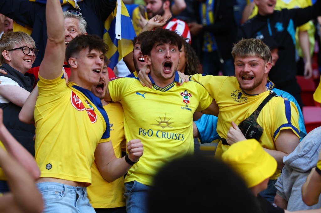 LONDON, ENGLAND – APRIL 25: Fans of Southampton during the Emirates FA Cup Semi Final match between Manchester City and Southampton on April 25, 2026 in London, England. (Photo by Matt Watson/Southampton FC via Getty Images)